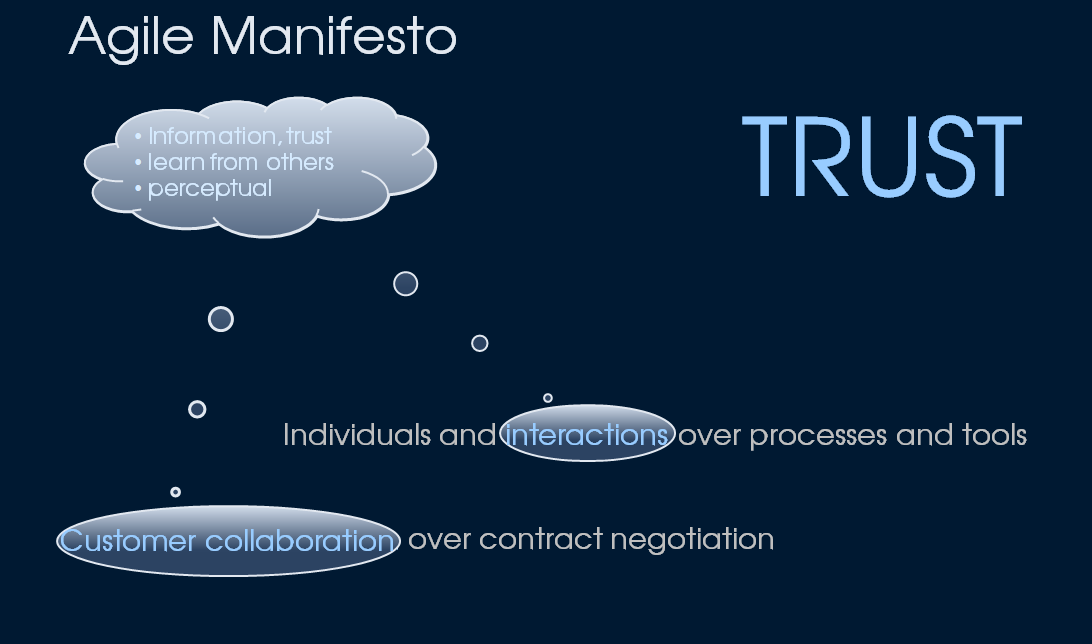 These rules are not by accident, but they simply reflect the human nature. Because people feel more comfortable in a faithful atmosphere than in a climate of distrust and people are much more productive in such an environment. And People like to be informed and they appreciate transparency and the feel better when taken serious. In this context we also have to refer to the topic of contracts: there are spent so much effort to protect each other on the level of teams, between departments and between companies. There is no added value in these effort but only prevent us from being productive.