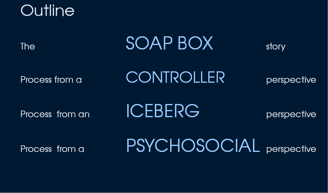 The third perspective finally was name giving to this whole presentation, because especially for processes it holds true that the crucial things usually can be found underneath the waterline.
